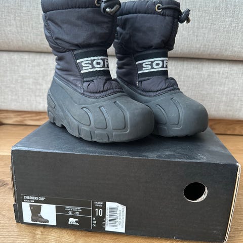 Verdens beste vintersko for barn Sorel Super Trooper i størrelse 27.. Støvelen er designet for unisex bruk og har en solid yttersåle med godt grep, samt en isolert innside for varme og komfort i kalde forhold. Innertøffelen kan også enkelt tas ut.