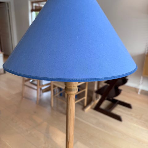 Funker som den skal. Har bryter under skjermen. Fått nytt jordet støpsel. E27 sokkel. Lampeskjerm av god kvalitet fra Bohus følger med. Mål høyde m/skjerm: 64cm