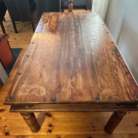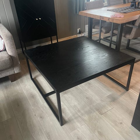 Selger Bombay sofabord 90x90xH45 er noe bruksmerker men ellers fin og solid bor.