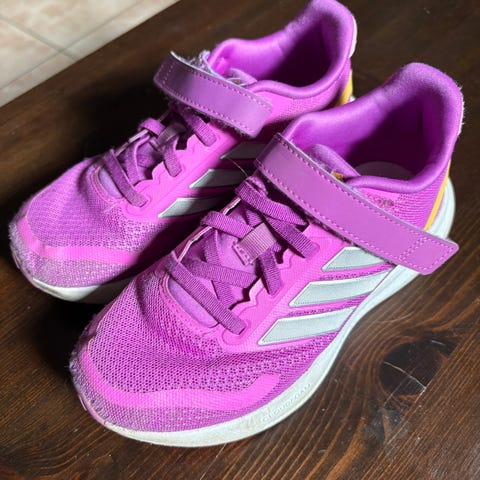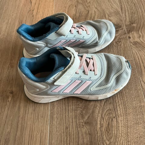 Hvite og svarte Adidas unisex sneakers i størrelse 31. Borrelås. Svært pent brukt på innetrening 5-6 ganger.