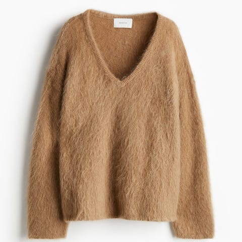 H&M genser i mohairull, størrelse L, farge hvit. Genseren kan også passe en M, den er kun brukt å vasket en gang, ingen synlige bruksmerker