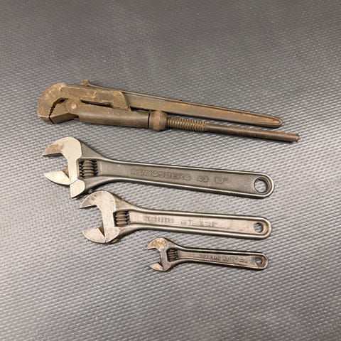 Selger en stor original Kongsberg skiftenøkkel, modell No. 84 – 15”. Klassisk, kraftig norsk verktøy laget for hard og langvarig bruk. Nøkkelen er brukt og har tydelig overflaterust og patina, men justeringsmekanismen fungerer som den skal. Ingen sprekker eller skader. Dette er solid gammeldags kvalitet, langt unna moderne lettvektsverktøy. Perfekt til verksted, rørarbeid, restaurering eller samler. Selges som vist på bilder. Kan sendes eller hentes etter avtale.
