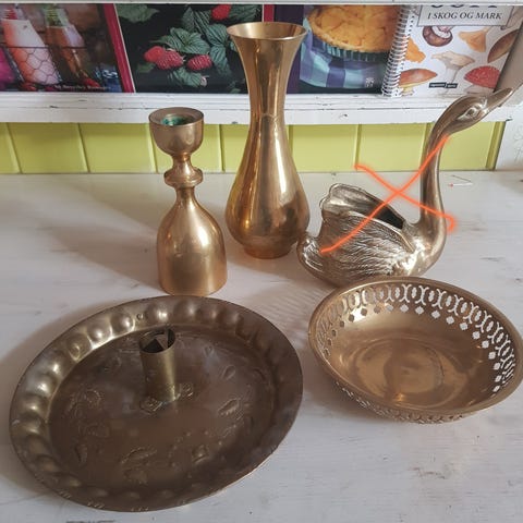 Det mangler et blad på messing detaljene på den ene pæra. Ledningen er ugjoret