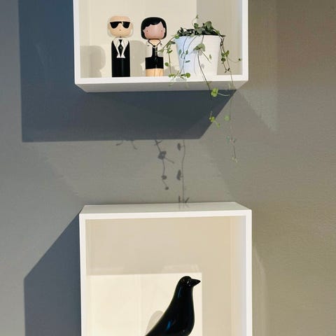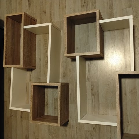 Har totalt 17 ferdig monterte oppbevaringshyller. Pris 100,- pr. stykk.