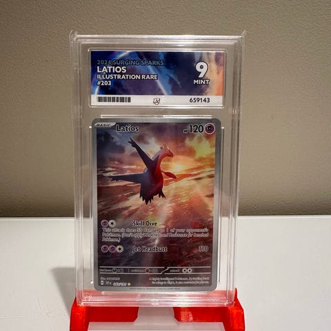 Latios Illustration Kit 2023 Pokémon kort med vurdering 10 (Gem Mint) fra ACE-graderingstjeneste. Kortet er innkapslet i plastkapsel for beskyttelse og bevaring.