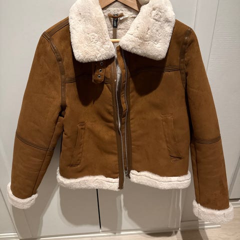 H&M fuskepels i str S. Jakken er svart og laget av polyester. Med lommer og knepping med knapper. Fremstår som ubrukt.