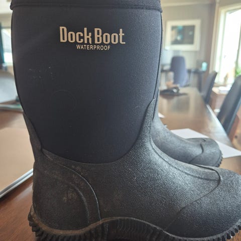 Dock Boot, svarte, str 25 selges. Pent brukt, men det syns at de er brukt. Hele og pene.