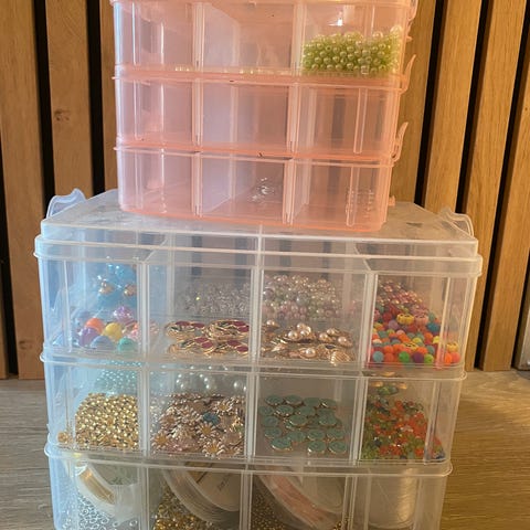 Det er utstyr til å lage armbånd, øredobber, kjeder m anheng +++ Se bilder.