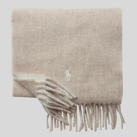 Ralph Lauren ull skjerf i grå farge, størrelse one size. Skjerfet har frynser i endene og er laget av ullmateriale. Passer for menn.