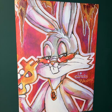 Selger et innrammet bilde av Swanson sin pyramide, kjent fra serien Parks and Recreation.