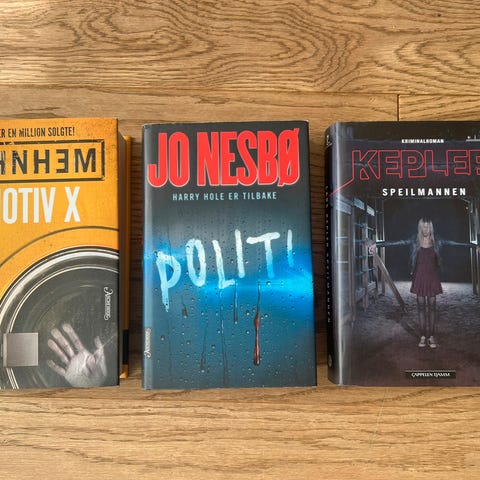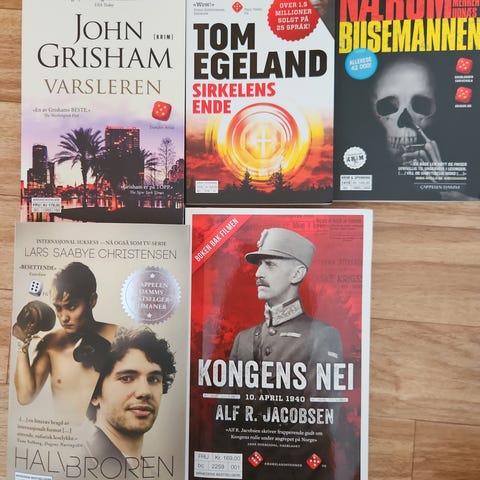 Fire innbundne krimbøker selges for 50,- pr stk, rabatt ved kjøp av flere. Sveen, Grisham og Child er fra 2025 og fremstår som helt nye, Granhus er noe eldre, og denne er også signert med forfatterens navn. Alle er hele og fine. Alt ettersom hvor mange som vil kjøpes, legger jeg til fiks ferdig før bud. Så bare send en melding.