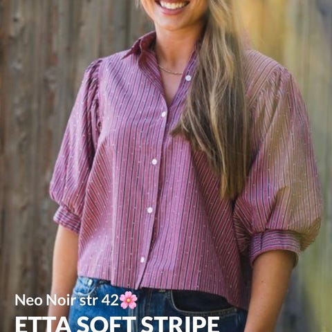 Lekker skjorte fra Neo Noir i en mørk rosa farge med striper. Etta Soft Stripe Stone skjorten har korte puffermer, klassisk skjortekrage og er dekorert med søte glitterstener. Perfekt til både hverdag og fest!