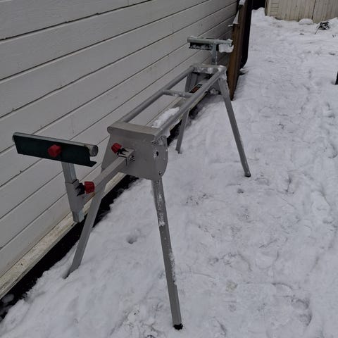 Selger et GRT kapp- og gjærsagbord / universalbord, beregnet for montering av kapp- og gjærsag. Bordet er stabilt, har justerbare støttearmer for lange emner og integrerte strømuttak på siden. Dette er et kostbart bord i utgangspunktet, men selges rimelig da det har bruksslitasje og trenger litt pleie/justering. Alt er funksjonelt, ingen strukturelle skader. Perfekt for verksted, garasje eller byggeplass. Selges som vist på bilder. Hentes eller fraktes etter avtale.