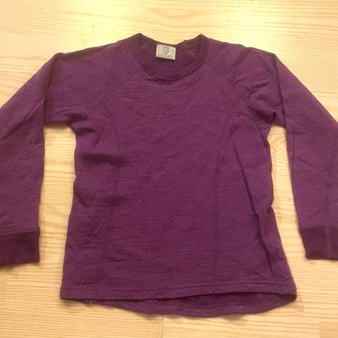 A14.str. 122 Ullundertrøye 100% merino m/bambus antikløebelegg (lilla) Boco. Fin stand. 100kr