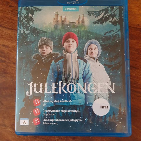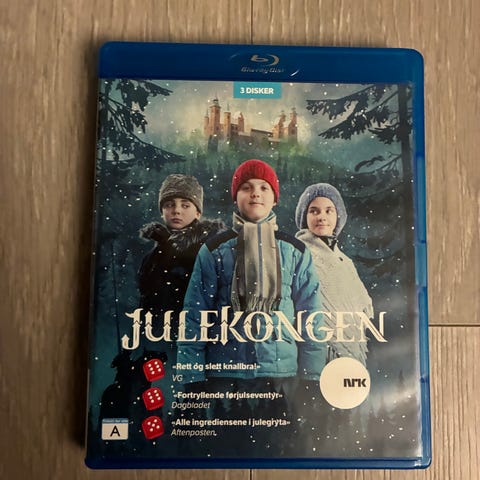 NRK Julekongen blu-ray med 3 disker. Inneholder serien Julekongen med Kevin på 9 år og hans familie i juleeventyr. Serien har norsk tale og er produsert for familier og barn.