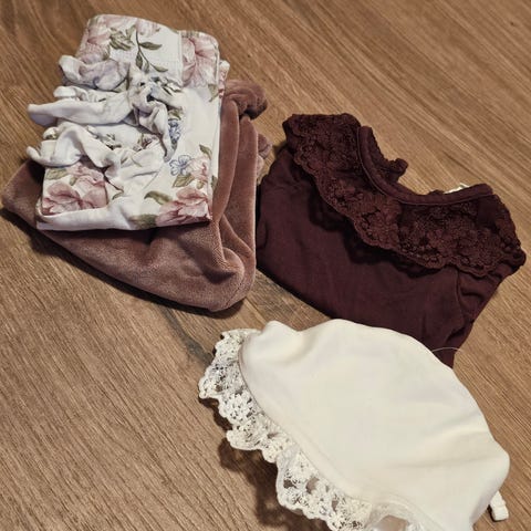 Stor pakke med masse fine bomullsklær til nyfødt jente. Forskjellige merker som Lindex, HM, Cubus og Newbie. Brukt, men fortsatt fint.