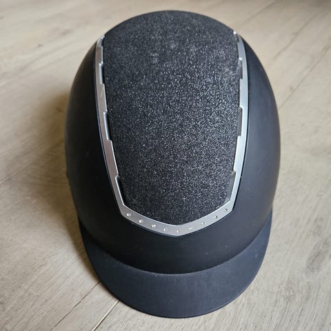 Hjelmen har god ventilasjon og justerbar stropp for optimal sikkerhet og komfort.