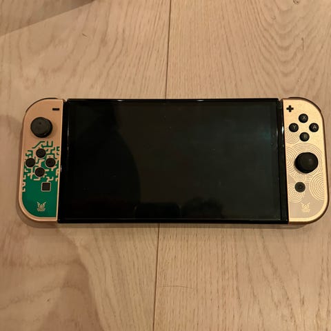 Nintendo Switch spillkonsoll med Joy-Con kontroller og Zelda-spill