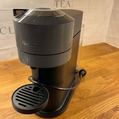Nespresso Vertuo kapselkaffemaskin i svart. Maskinen bruker kapsler for enkel tilberedning av kaffe. Pent brukt.