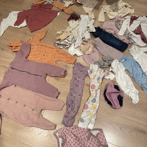 Klespakke til jente, str. 62/68, inkl flere plagg i ull