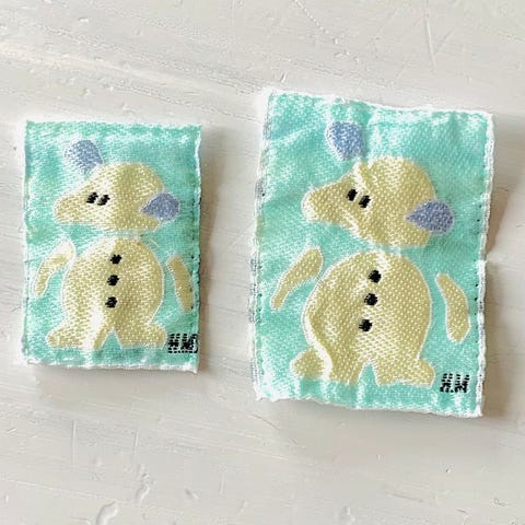 Fra AI; Dette er vevde tekstilmerker med retro-grafikk og tekst som "STAR LIGHT" og "SUPER LIGHT".