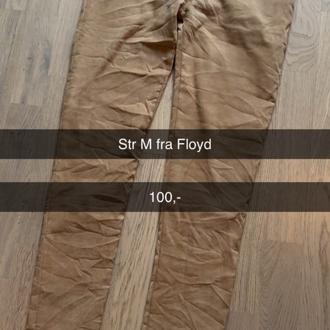 Free/quent bukser i beige farge, laget av polyester. Bukser er i størrelse medium for kvinner.