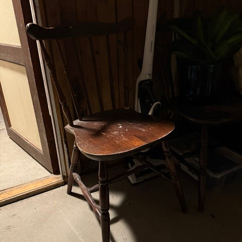 4 stoler gis bort med 4 puter. Er bruksmerker og en liten malingsflekk på den ene. Se bilder
