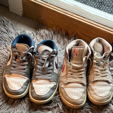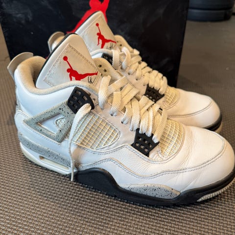 Air Jordan Retro 4 sneakers i størrelse 42. Skoene har en kombinasjon av hvit og grønn farge med svarte detaljer. Skoene er kjøpt samme sommer i 2023, og dessverre blir liggende i skapet. Skoene er godt brukt, og lissene har begynt å bli skitne. Læren har ”creaset“ seg litt. Men eller så er skoene i fin stand. De ble kjøpt for ca 4000kr da. Og har en pris på 800kr siden jeg ikke har skoeske, kvittering og ønsker å bli kvitt dem. Send gjerne en PM om du ønsker fler bilder, eller ha en diskusjon om pris.