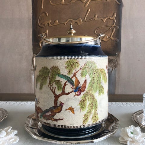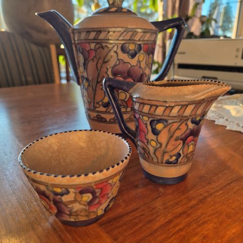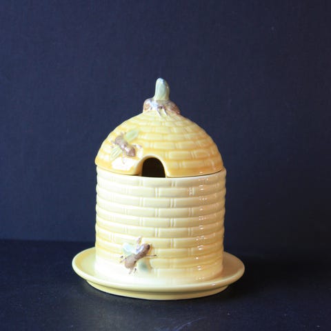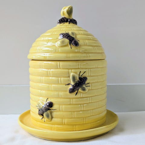 Det er et lite nag i glasuren på vingen på bien på toppen og to under lokket ellers er den hel og fin med normale bruksmerker