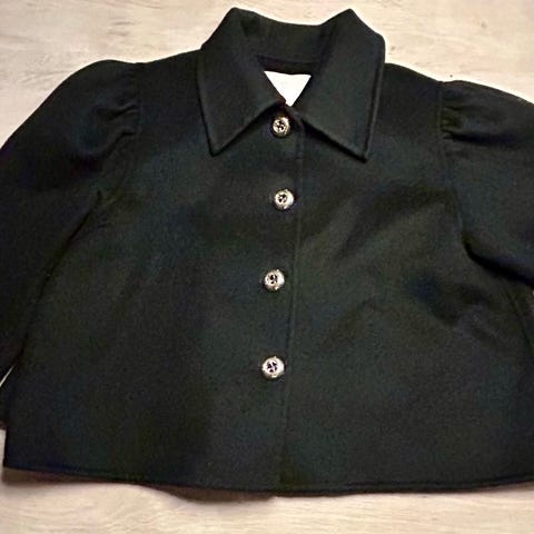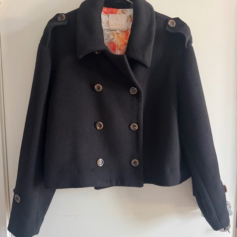 Selger en kjempefin byTiMo paljettjakke i sort. Jakken har cropped passform (kort lengde) og puffede skuldre - lukkes med 6 hemper. Jakken er bare blitt brukt ved et par anledninger og fremstår i god stand. Ny pris på jakken i butikk var 3 699,- kroner. Kjempefin jakken som spriter opp ethvert antrekk!