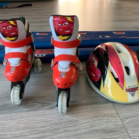 Egnet for utendørs bruk. Laget med en stiv vinylstøvel for god ankelstøtte. Svært lite brukt, og esken følger med ☺️