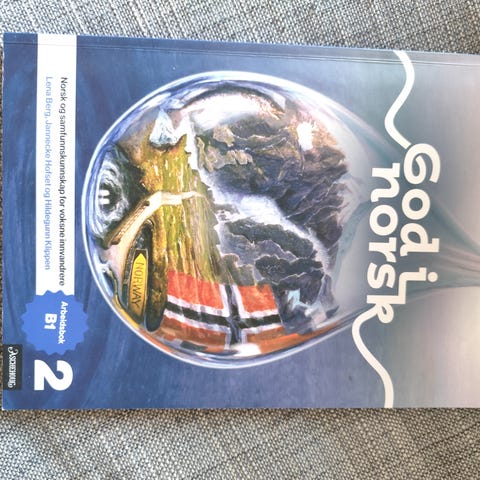God i norsk 2 er en lærebok i språk og ordbøker utviklet for voksne innvandrere. Boken dekker norsk språk og samfunnskunnskap, og er tilpasset nivå A1 til B1. En bok er en tredjedel full av blyanter og litt sølt med kaffe.