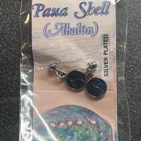 Små og runde øredobber. Hvite. Ca 1 cm i diameter.