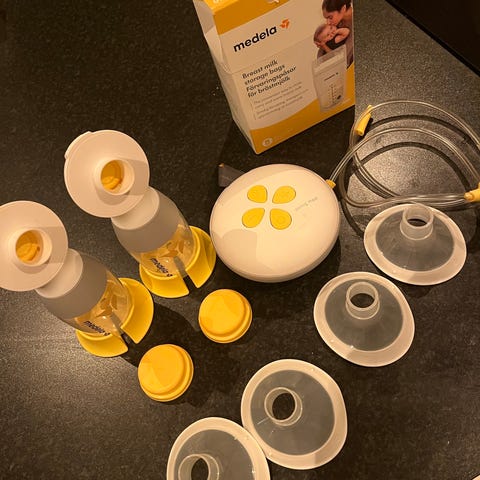 Alt selges samlet. Utstyret er pent brukt og godt tatt vare på. En svært praktisk og komplett startpakke som dekker det meste man trenger til pumping, oppbevaring og sterilisering.