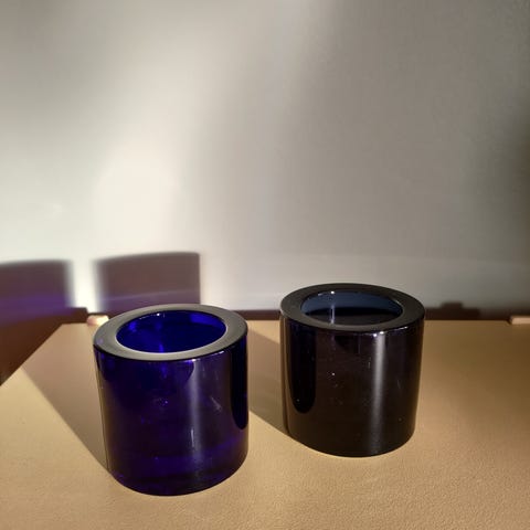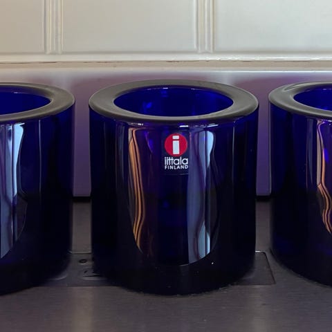 Iittala Kivi lyslykt i fin dyp blåfarge. Laget av glass, designet for å holde telys.