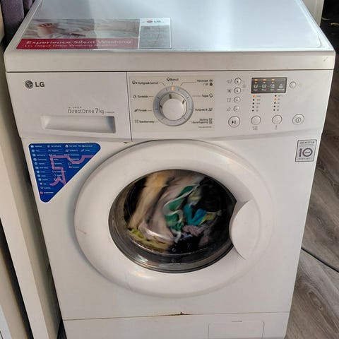 Maskinen virket men det er to ting som kan/bør fikses. (1) jeg antar at kulelageret til trommel bør skiftes. Den bråker fælt når den sentrifugerer. (2) døren kan skiftes ettersom den må åpnes med en smørekniv der som det er en svart tape i bildet. Dette virker utmerket, men kan skiftes.