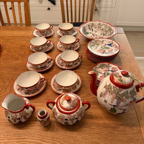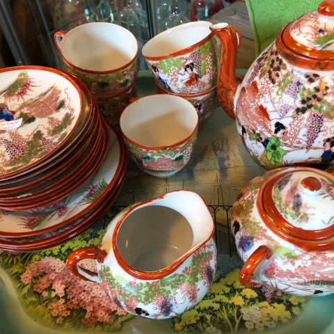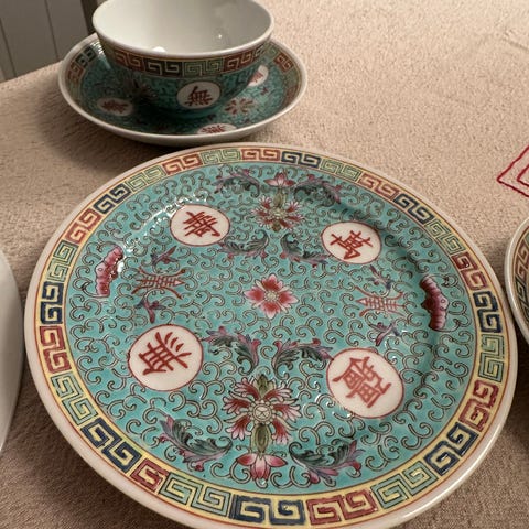 Kinesisk porselens servise med tradisjonelt motiv