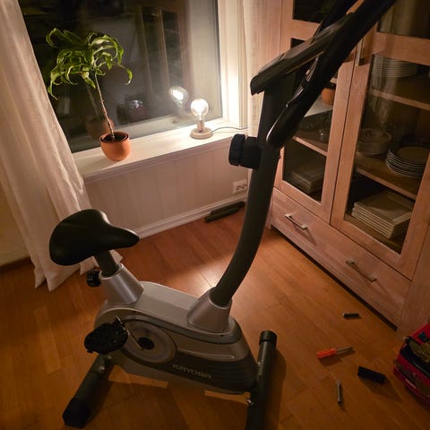 Kayoba Trimsykkel med digitalt display som viser tid, hastighet, distanse og kaloriforbruk. Utstyrt med justerbart sete og pedaler med stropper. Passer for hjemmebruk til kondisjonstrening eldre. Har 2 hjul bak for enkel flytting. Tar liten plass. Må hentes!