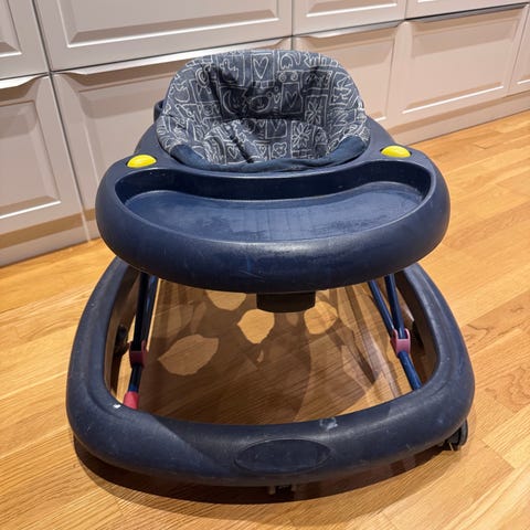 Gåbil til småbarn med ratt, knapper og lite rom i setet (lyd virker ikke)