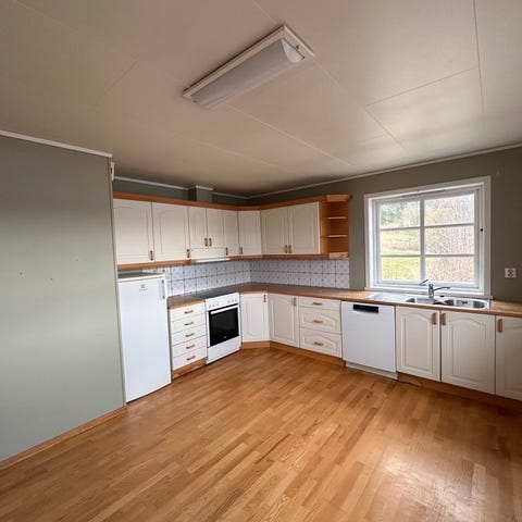Hvitt høyglans kjøkken fra Strai selges høystbydende over 15000,- Kjøkkenet er uten skader og alt fungerer som det er tiltenkt. Det følger med en Villavent ventilator mens resten av hvitevarene ikke følger med.