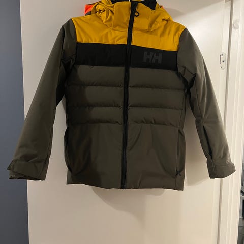 Helly Hansen boblejakke/ vinterjakke med snølås og tilhørende bukse uten seler, men med borrelås i livet. Buksen har også strikk og hempe til å feste på skoene.