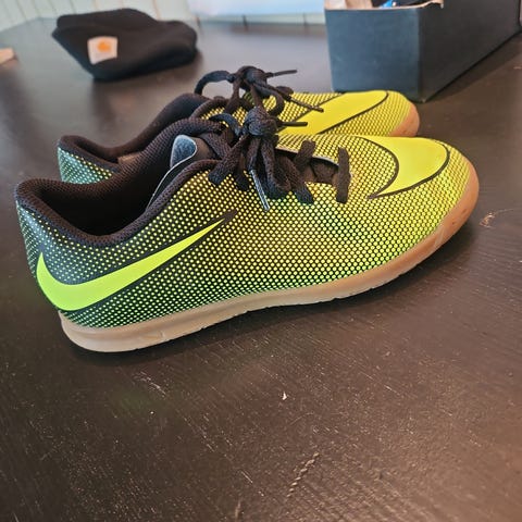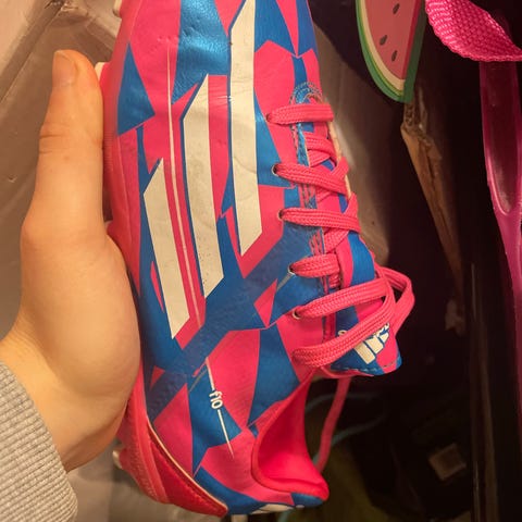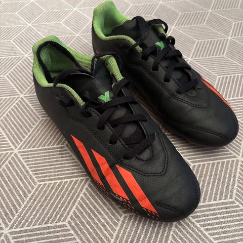 Adidas fotballsko størrelse 36 2/3 i blå og svart farge. Skoene har knotter under sålen for bruk på gress og kunstgressbaner. Materialet er syntetisk, og skoene er designet for bruk av menn.