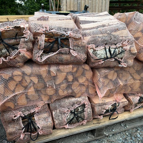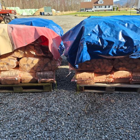 60 liters sekker med tørr bjørkeved selges kr. 130,- pr. sekk