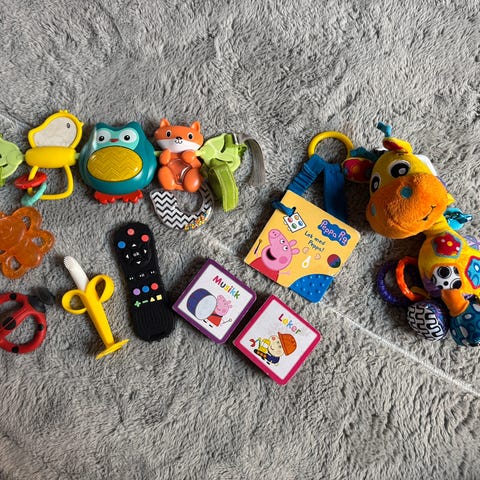 Fint brukte babyleker. Piano med forskjellige dyrelyder, 2 stk bamser, to stk kosekluter, to stk rangler