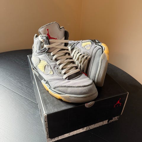 Air Jordan Sneakers joggesko i størrelse 42. Skoene har en kombinasjon av mørkeblå og hvit farge, med svart lisser. Skoene er veldig godt brukt, hvitfargen har begynt å falle litt bort. Meget fine sko fra 2021, men dessverre de som er mest brukt. De ble kjøpt for ca 1500 da, men jeg selger de for 200. Kan gjerne sende fler bilder/video på PM, eller om du vil snakke om pris.
