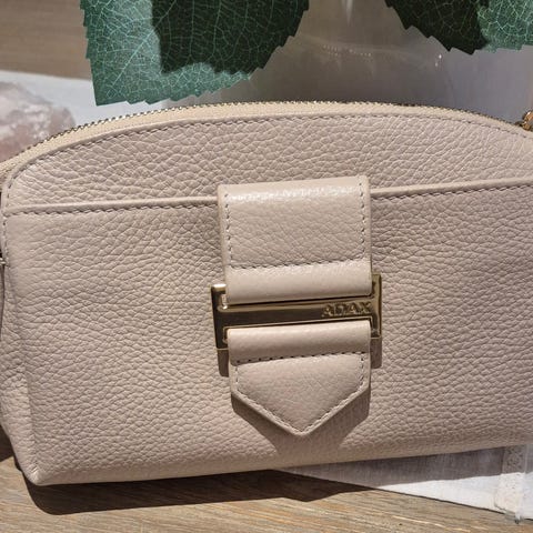 Liten pen veske fra danske Adax i samarbeid med Caroline Berg Eriksen. Laget av myk geiteskinn av høy kvalitet, har ingen synlige bruksmerker. Pent brukt ved sjeldne anledninger.