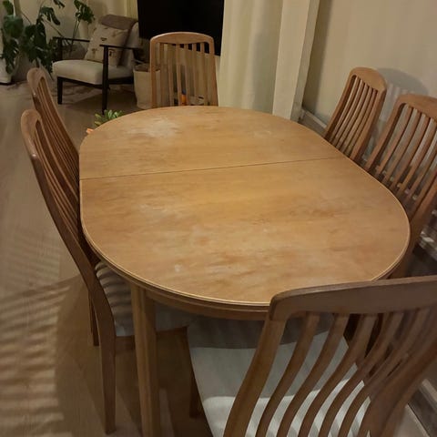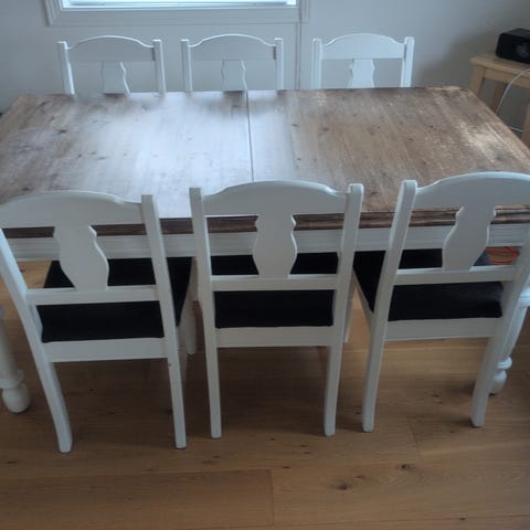 Vi ønsker å selge vår spisegruppe samlet. Alternativt kan vi stykke opp gruppen om det er enkelte ting som er mer interessant. Kom med forslag. Det blir billigst å kjøpe samlet.