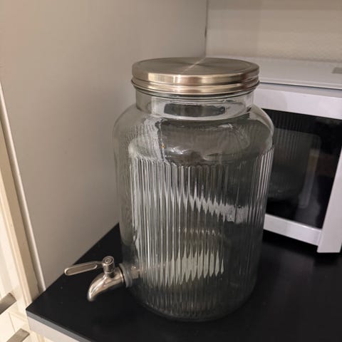 Glassdispenser med kran. Selges da vi har 2 stk og denne nesten ikke har blitt brukt.