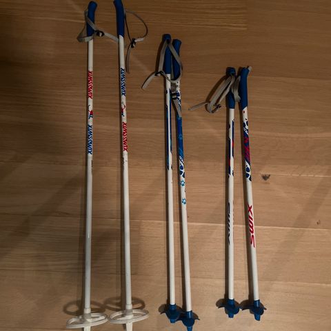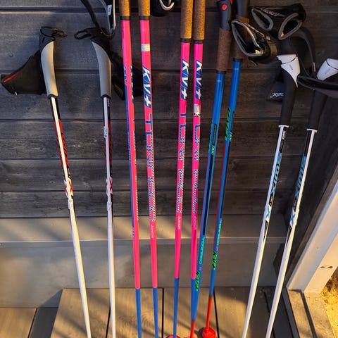 Brukte langrennstaver til barn i forskjellige lengder. Alle er godt brukte, men har mye bruk igjen.