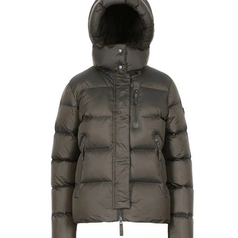 Cedrico Stella dunjakke i størrelse M. farge oliven. Jakken er laget av dun og er designet for kvinner. Et lite rift på armen er pent reparert av skredder. Litt liten i størrelsen
